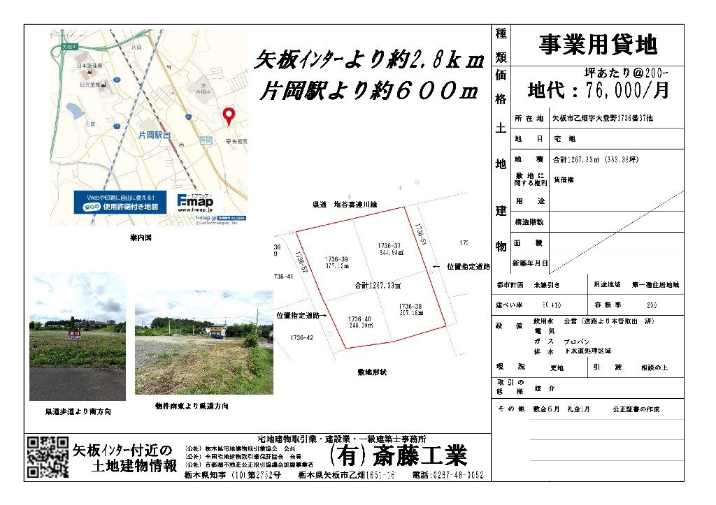 矢板インターから約3.3km 約2454坪の事業用売地(山林約1250坪共)