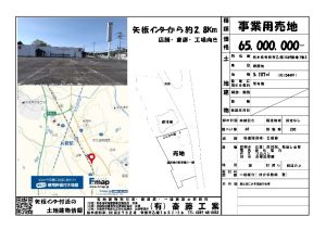 矢板インターから約3.3km 約2454坪の事業用売地(山林約1250坪共)